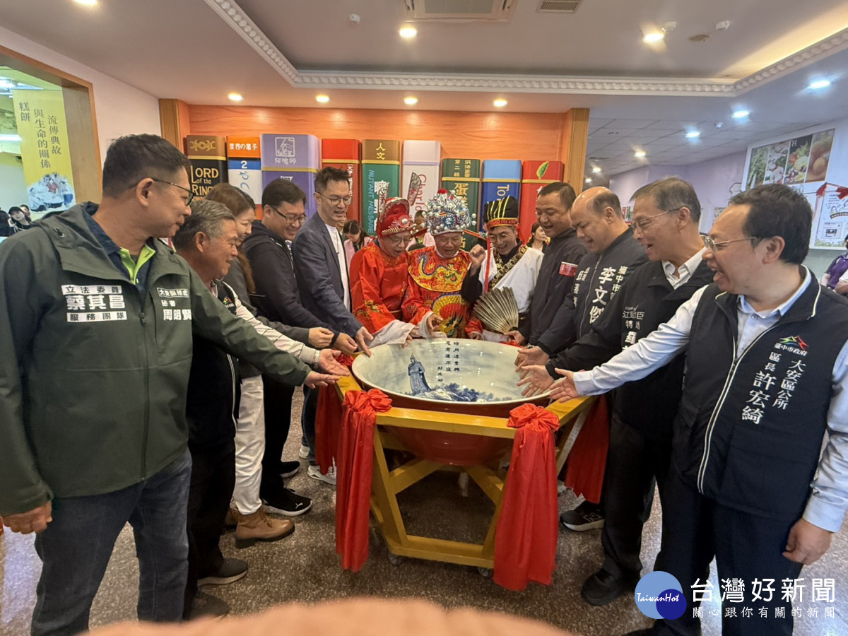 第十一屆阿聰師博餅文化,來賓受邀大骰子後展開博餅熱鬧活動。(記者陳榮昌攝)