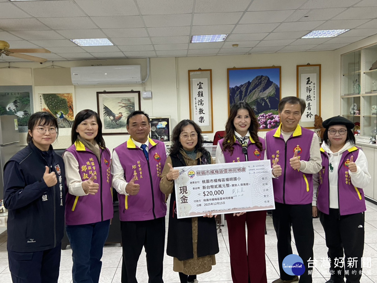 桃園市楊梅區雲林同鄉會於12月15日結合桃園市政府警察局楊梅分局至楊梅區楊明國小捐贈助學金新台幣貳萬元,本日出席捐贈活動有校長彭玉宜、楊梅區雲林同鄉會創會理事長邱孟毓(現任桃園市警察之友會楊梅辦事處顧問)、總顧問鄭淑方(現任市議員)、總幹事林得吉、財務長吳佩慈、理事許美珠、秘書張美慧及楊梅派出所警員袁巧真等熱心參與。