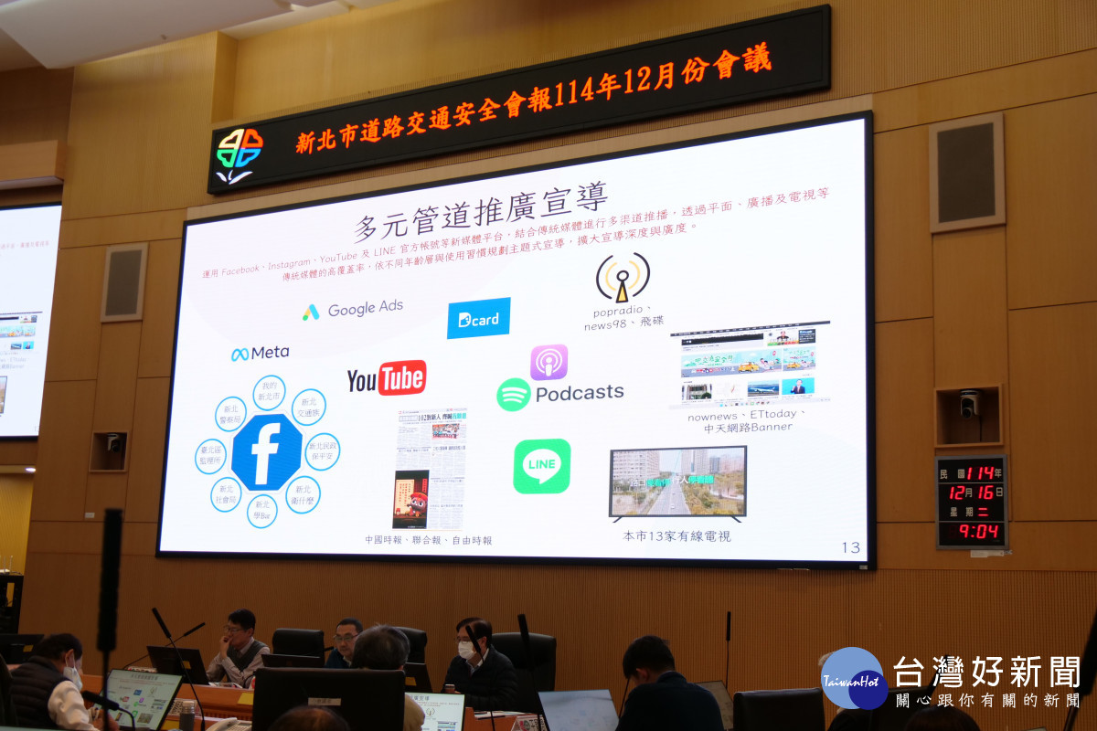 新聞局於會中進行「生活式交安宣導」專案報告指出,道安宣導小組以「交通安全在生活的每一刻」為主軸,運用短影音、社群貼文等多元媒體形式,深入市場、公園、醫院、捷運站,甚至在宮廟等生活場域,將交通安全觀念自然融入民眾日常,讓交安宣導不再只是口號,而是看得見、記得住、用得到的生活提醒。