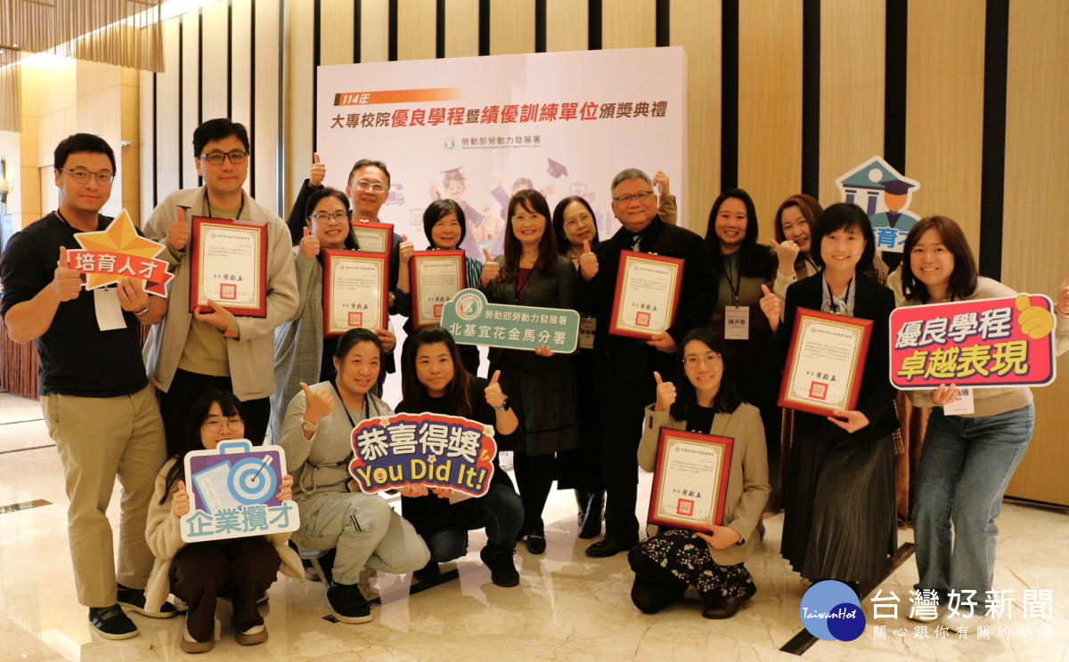 為鼓勵大專校院與企業共同培訓青年、強化學用接軌,勞動力發展署推動「補助大專校院辦理就業學程計畫」。為肯定優良學程與績優工作崗位訓練單位,勞動力發展署辦理「優良學程暨績優工作崗位訓練單位」評選活動,今(16)日舉行頒獎。北分署合作夥伴表現亮眼,轄區共有4所大專校院獲選優良學程、2家企業榮獲績優工作崗位訓練單位,充分展現北分署深耕產學合作,培育青年就業即戰力的成果。