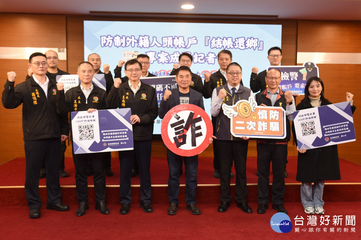 苗栗縣警察局今年6月起結合勞工及青年發展處,針對工作期滿外籍移工推動「結帳還鄉」專案,防制其帳戶淪為詐騙集團洗錢工具,統計下半年涉及人頭帳戶案件的移工,已從上半年的44人大幅降至10人。警察局16日舉行成果發表會,以數據驗證具體成效,另邀請遭詐騙的外籍學生現身說法分享經驗,同時與兩所大學簽署合作備忘錄宣示「校警合作」,守護外籍學生財產安全。