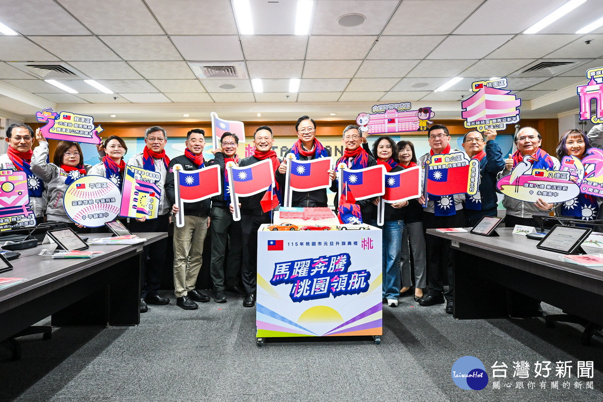 張善政指出,明年適逢馬年,升旗典禮以「馬躍奔騰.桃園領航」為主題,象徵桃園持續向前、勇於開創的城市精神。本次典禮活動內容豐富,特別邀請知名歌手施孝榮及陸軍專科學校戰鼓隊,擔任表演嘉賓,並由「桃園合唱劇工坊」領唱國歌,陸軍二一砲指部將協助拉展大型國旗。活動也結合樂天女孩精彩演出,為典禮增添活力。另外,為響應市府致力推動的「靜桃計畫」,環保局特別號召古董車友組成示範車隊,在活動現場展示古董車優雅風采與環境保護理念。