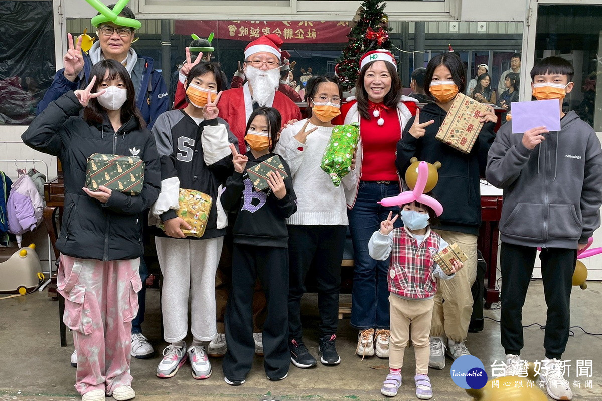 青年局長侯佳齡與翔耀實業董事長林以山化身聖誕老人陪伴孩童歡渡聖誕節。