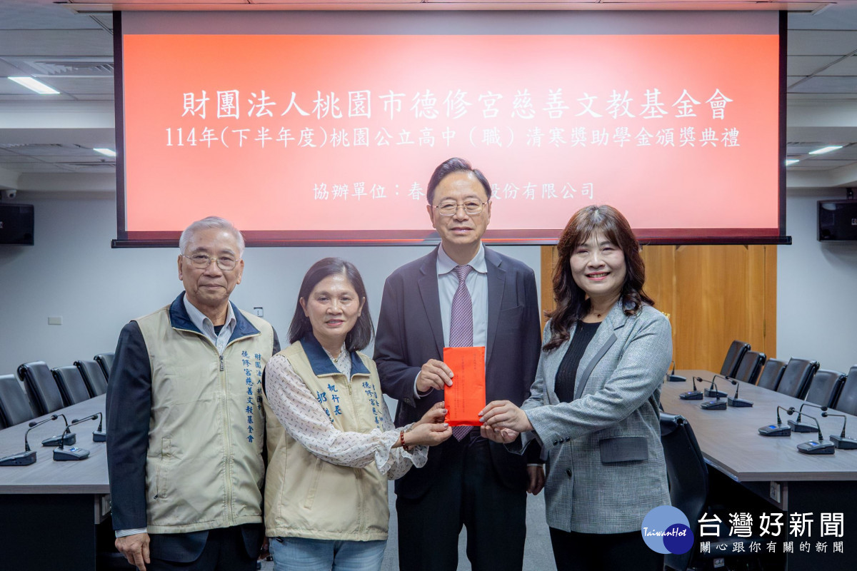 教育局表示,德修宮慈善文教基金會是由春虹建設董事長黃正園先生號召善心同好,於104年7月成立,並設立本市公立高中(職)清寒獎助學金辦法,協助清寒學生安心就學。近4年來已嘉惠近4,000名學生,累計捐助金額超過新臺幣1,185萬元,幫助桃園學子克服困境,持續追求學業與夢想。包括市府教育局長劉仲成、德修宮慈善文教基金會執行長郭麗華、副執行長廖萬全、桃園市各受獎助高中職校長及代表等均一同出席。