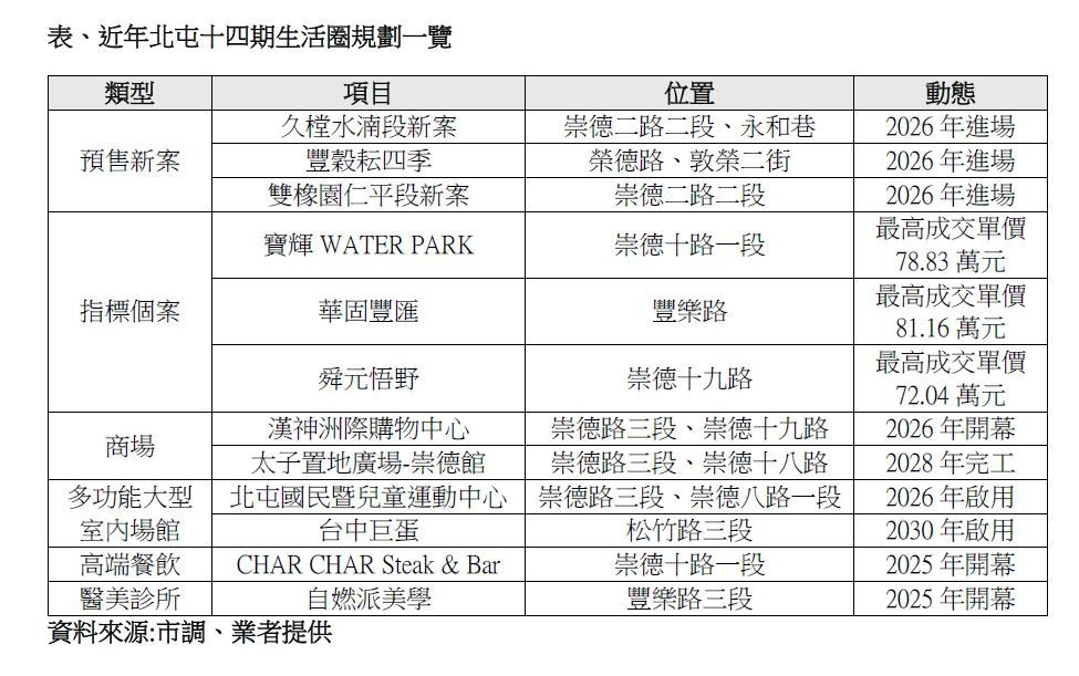 北台中憑藉重大建設密集推進,商場開發、公共建設與高端餐飲等題材加持,不受打炒房影響,穩坐房市推案熱區。其中,14期生活圈匯聚漢神洲際購物廣場、台中巨蛋、太子置地廣場、北屯運動中心等利多陸續推進,吸引不少建商提前卡位推案,包括久樘開發「久樘水湳段新案」、豐穀建設「豐穀耘四季」,以及雙橡園開發「雙橡園仁平段新案」等新案都將於明年進場,從產品規格到價格帶均備受市場期待。