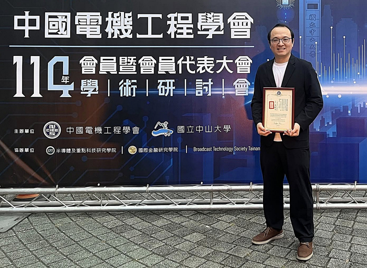 中國電機工程學會「優秀青年電機工程師獎」為國內電機與資訊領域具高度指標性的專業獎項,遴選對象為未滿40歲,且在學術研究或工程實務上具卓越表現的青年學者。該獎項每年學術界僅選出五位得主,競爭激烈,能獲此殊榮備受學界肯定。