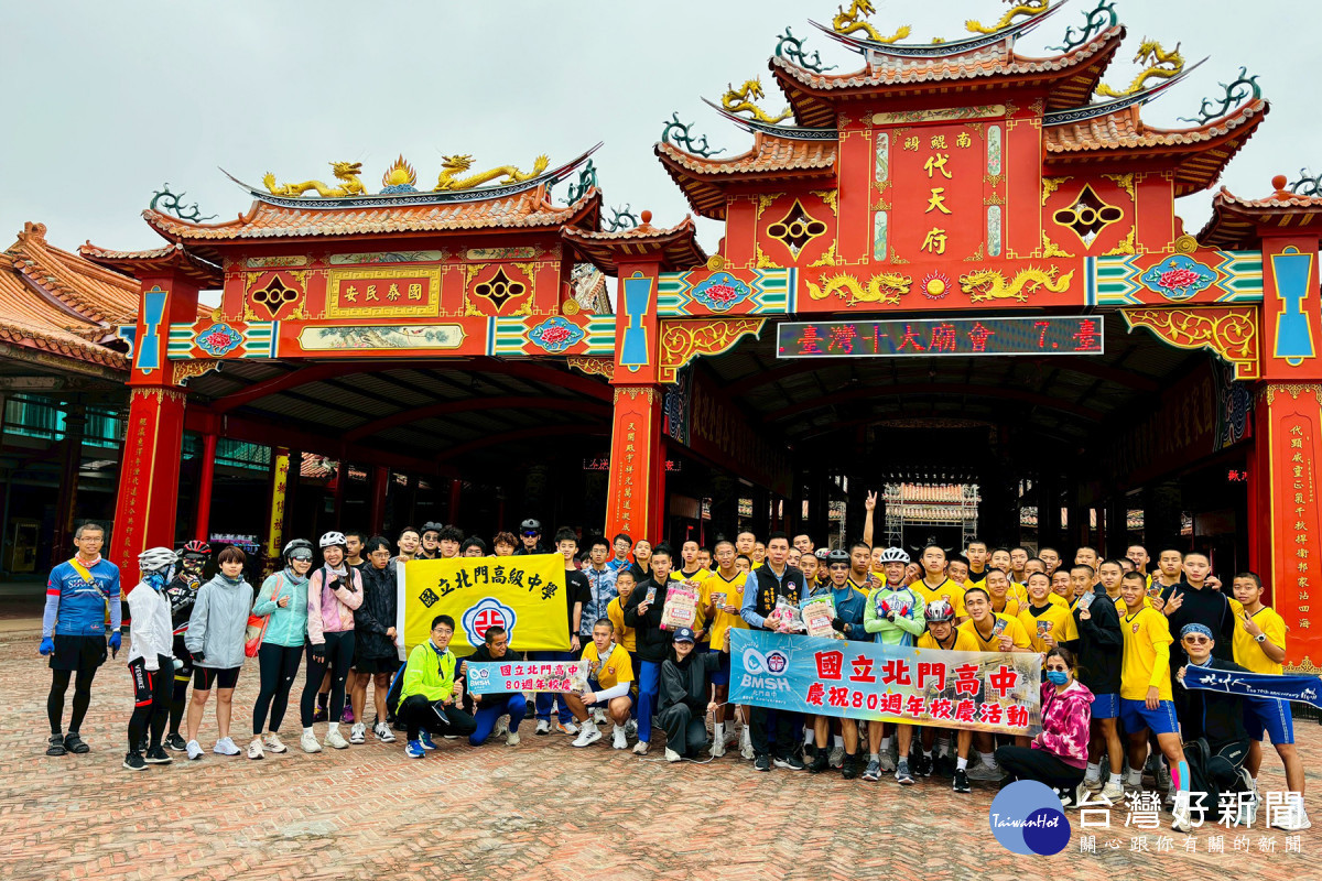 大北門區人情味濃厚,車隊行經各廟宇時受到熱情款待。曾任北門高中家長會長的南鯤鯓代天府常務董事吳松儒,代表廟方贈送平安鹽與自家公司生產的毛毯,為學生加油打氣。青鯤鯓朝天宮則贈平安符保佑路途順遂。佳里金唐殿主任委員黃維明則帶領師生入廟參拜及贈送平安禮。吳俊憲校長表示,活動不僅慶祝80週年校慶,也是一場環境教育與在地認同之旅,可說別具意義。