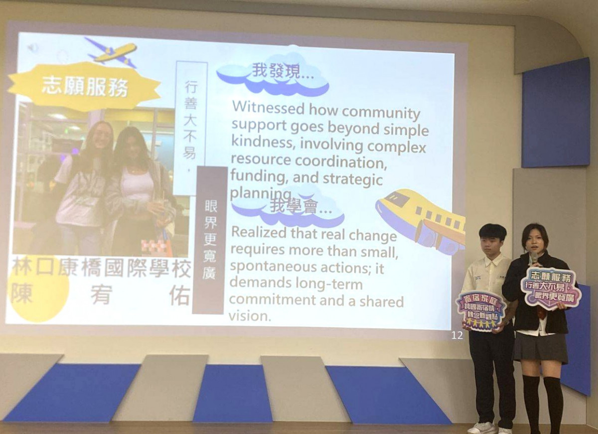 赴美參與「人道行動種子」計畫的林口康橋國際學校陳宥佑分享,出發前以為志工只是搬物資的體力活,到了當地機構才理解他們如何運用大數據精準掌握需求、籌資並整合各界支持,讓她驚覺「專業規劃」才是公益能夠長久的關鍵。丹鳳高中何昔恩也說,美國課堂鼓勵學生隨時提問,這種「重討論、輕標準答案」的學習氛圍,讓她從一開始的害羞緊張,慢慢培養出敢說、敢問、敢表達的自信與口說溝通能力。