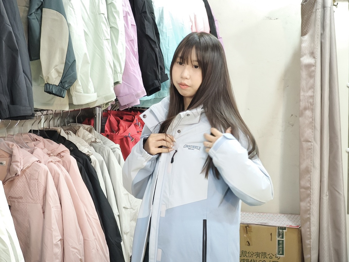 鍾文玲指出,今年商品設計以時尚剪裁為概念,考量許多消費者前往韓國、日本或其他寒帶國家旅遊,希望大家在保暖之餘也能穿得好看,因此在外套設計中加入腰線剪裁,不僅女性款式有修身設計,男性款式同樣融入腰線元素,提升整體穿搭質感。這款羽絨外套具備防水又透濕的特性,水分子無法滲入,遇到小雨時只需輕輕撥開,水珠便會順著布料滑落,在防水的同時維持高度保暖效果,並推出多種顏色供消費者選擇。