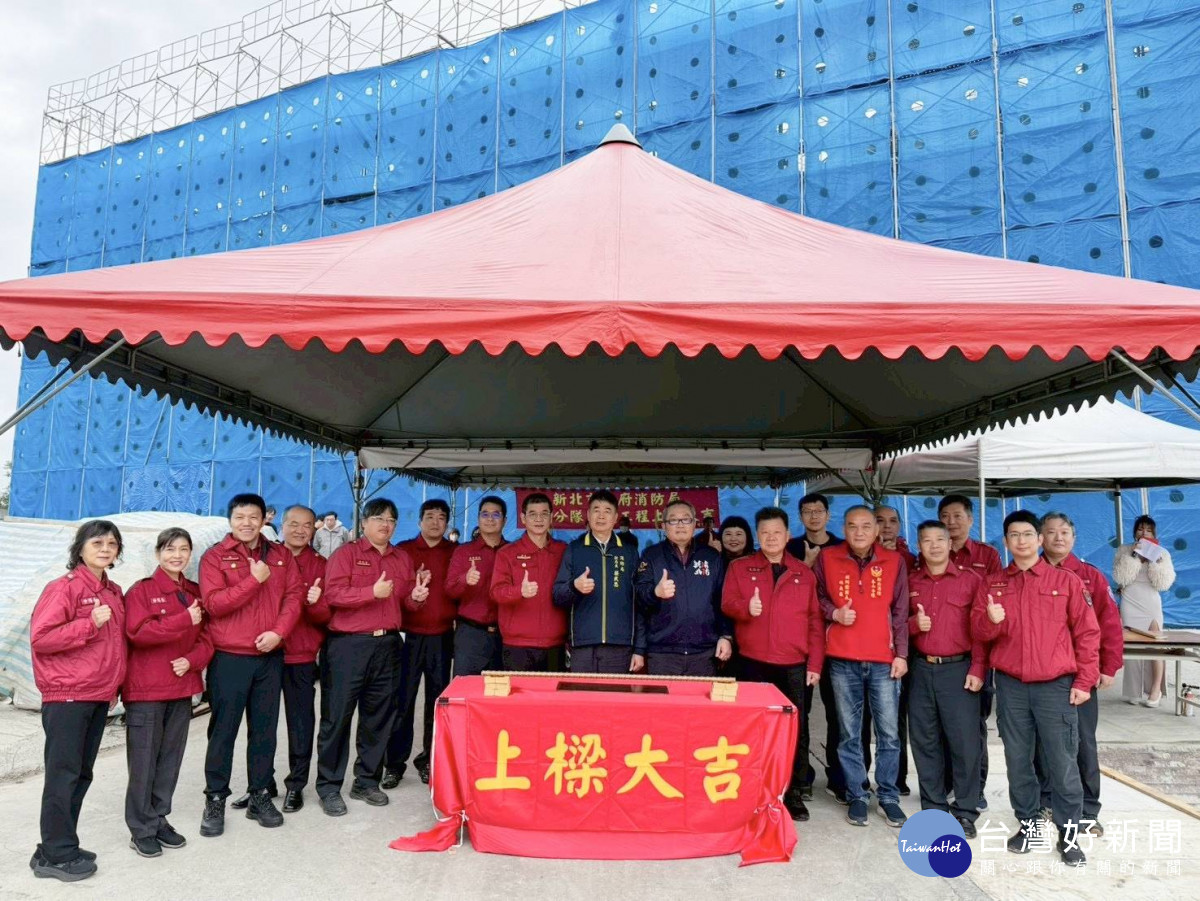 新北市政府消防局泰山分隊興建工程,今(31)日上午9時30分余工程基地舉行上樑典禮,由蔡武忠副局長、義消夥伴、與會貴賓及在地人士祝禱焚香祈福,共同見證本工程達成階段性目標,邁入新的里程碑。工程預計115年6月完工,進駐新廳舍後,透過更流暢的出勤動線、充裕的訓練空間,進一步提升救災救護效能,提供更優質的消防安全服務及市民安居樂業新環境。