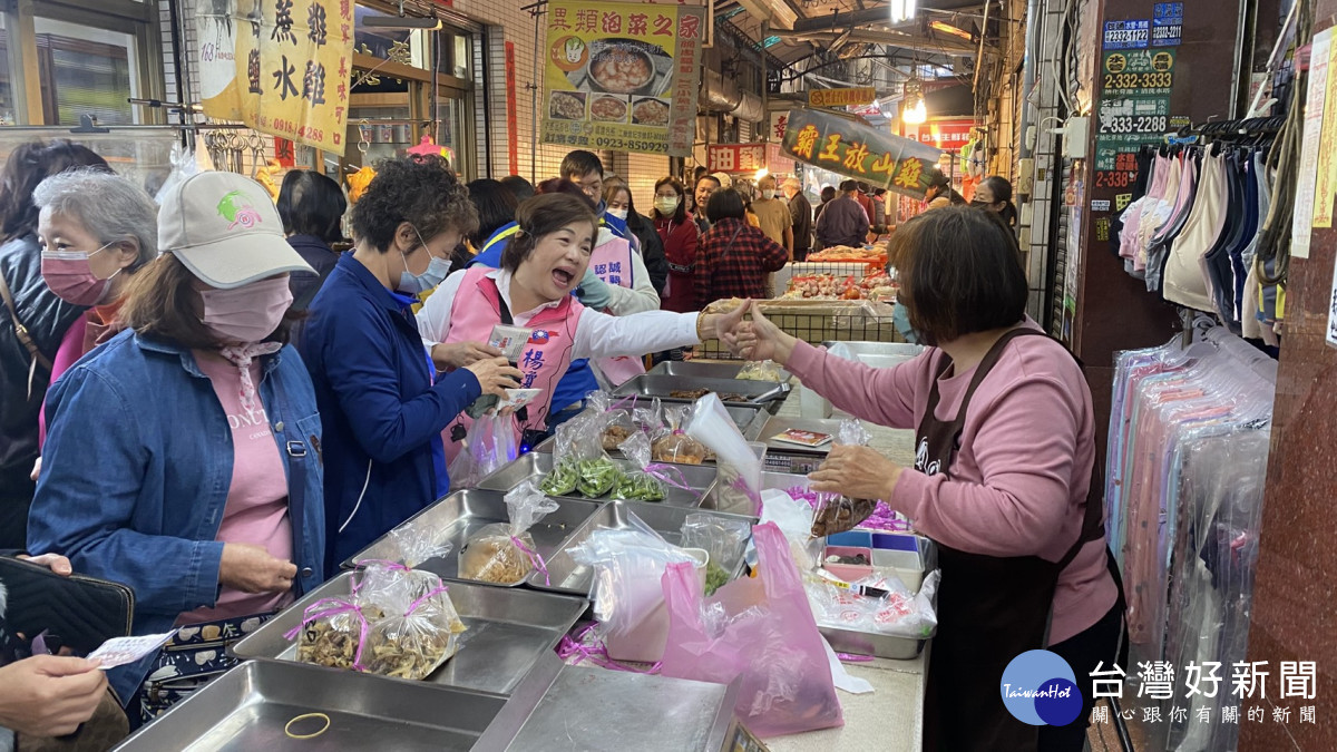 立委楊瓊瓔前於霧峰菜市場掃街拜票。