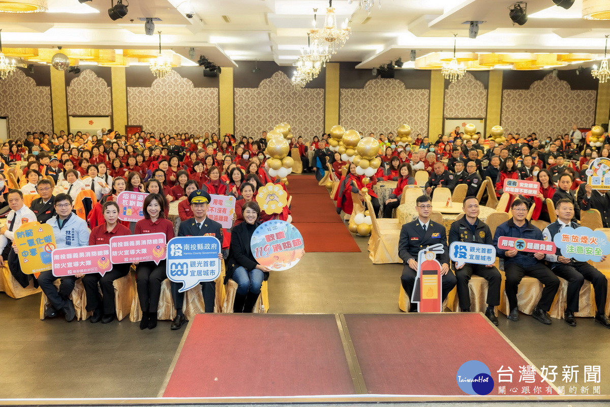新的一年1月19日將至,南投縣府為歡慶「119消防節」,8日上午在南投市南島婚宴會館舉辦「歡慶119消防節暨民力團體表揚典禮」。縣長許淑華親自頒獎,感謝消防弟兄及義勇消防、鳳凰志工、防火宣導隊、民間救難團體等民力團體平日辛勞及無私奉獻精神。