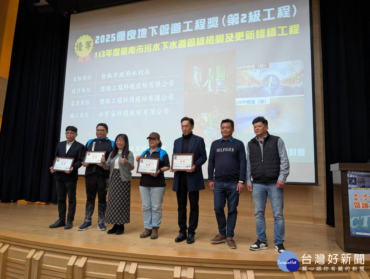 中華民國地下管道技術協會主辦的114年「優良地下管道工程獎」得獎名單出爐,南市水利局提報「113年度臺南市污水下水道管線檢視及更新修繕工程」及「臺南市虎尾寮污水下水道系統I幹管污水揚水站工程」分別榮獲「優等」與「佳作」獎項。