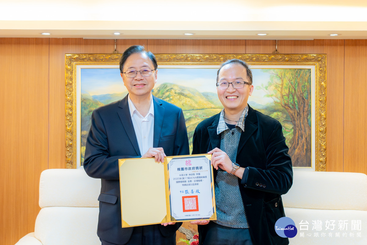 2025年第77屆iENA德國紐倫堡國際發明展傳來捷報,本次臺灣參展團隊共以29件作品參與競賽,於眾多國際競爭中脫穎而出,共榮獲12金、7銀、7銅及德國特別獎,其中桃園中原大學林政鞍教授、張雍教授、林義峯教授、新貴有限公司許新貴等人表現亮眼,共榮獲1面金牌及3面銅牌,成果斐然。桃園市長張善政今(16)日特別接見4件得獎作品之發明人(團隊),肯定其於國際舞台上展現卓越研發實力,為桃園及臺灣爭光。