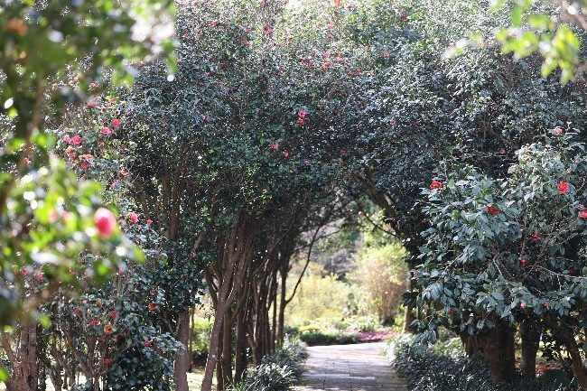 花卉試驗中心憑藉獨特的微酸性土壤與氣候,成為茶花生長的理想樂園: