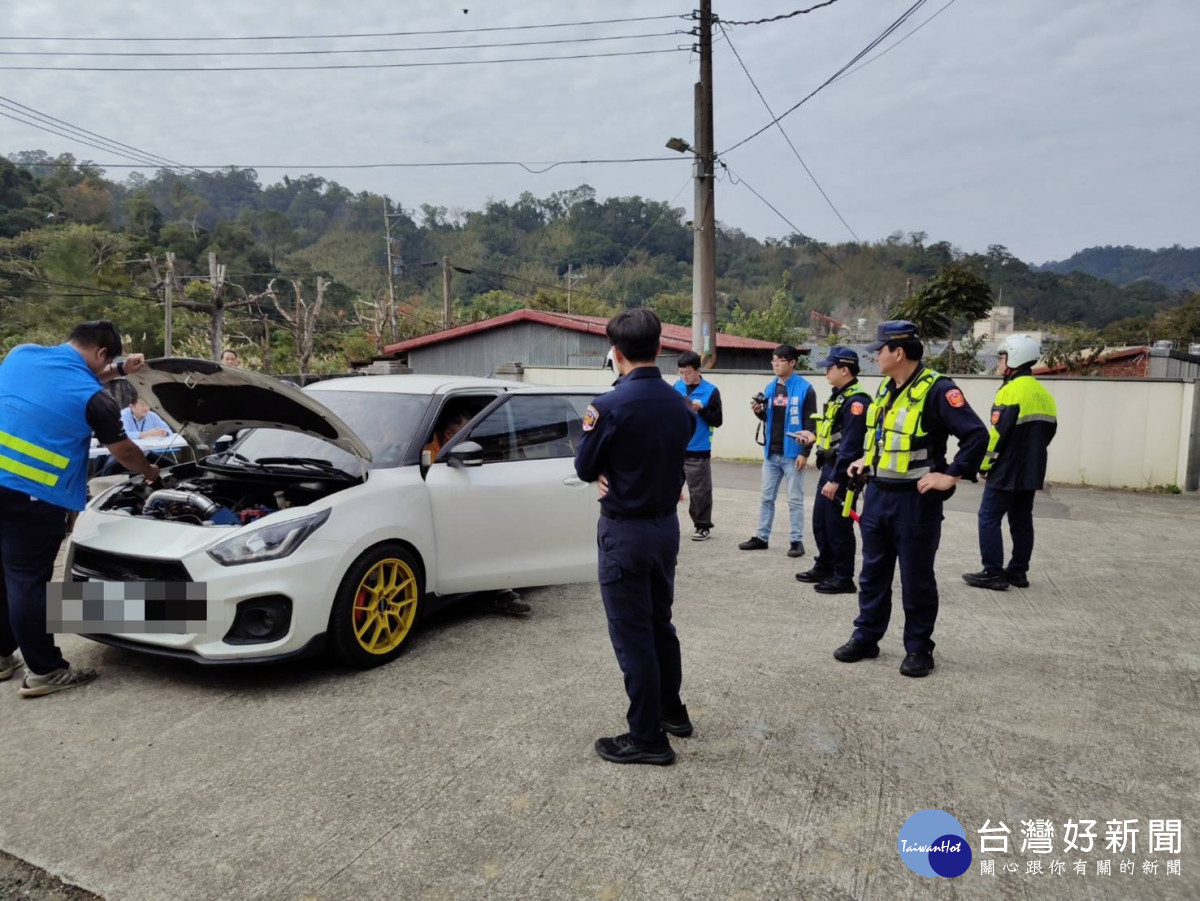 白色賓士排氣聲浪123分貝 大溪警環警監聯合稽查開罰