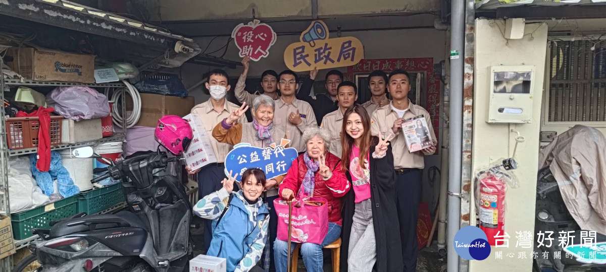 農曆春節將至,桃園市政府民政局「替代役公益大使團」服務於21日正式啟動,出動近100人次替代役男深入鄰里,協助華山基金會為獨居長者送餐,並結合具醫學系背景的役男,提供量測血壓、口腔保健等衛教服務,提升長者健康識能,同時致贈發熱衣及民生用品,陪伴長者溫馨過年。