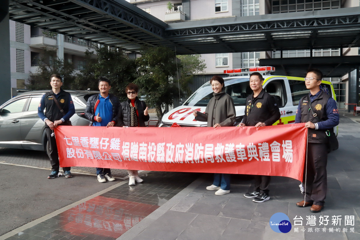 為提升南投縣緊急醫療救護及災害現場指揮效能,南投縣知名企業「七里香甕仔雞股份有限公司」及社會人士張振科,聯手捐贈縣府消防局救護車及救災指揮車各1輛。捐贈儀式23日上午9時30分於縣長室隆重舉行,由縣長許淑華代表受贈,並致贈感謝狀與紀念品,盛讚這份來自民間的溫暖力量,是守護南投縣民最堅實的後盾。