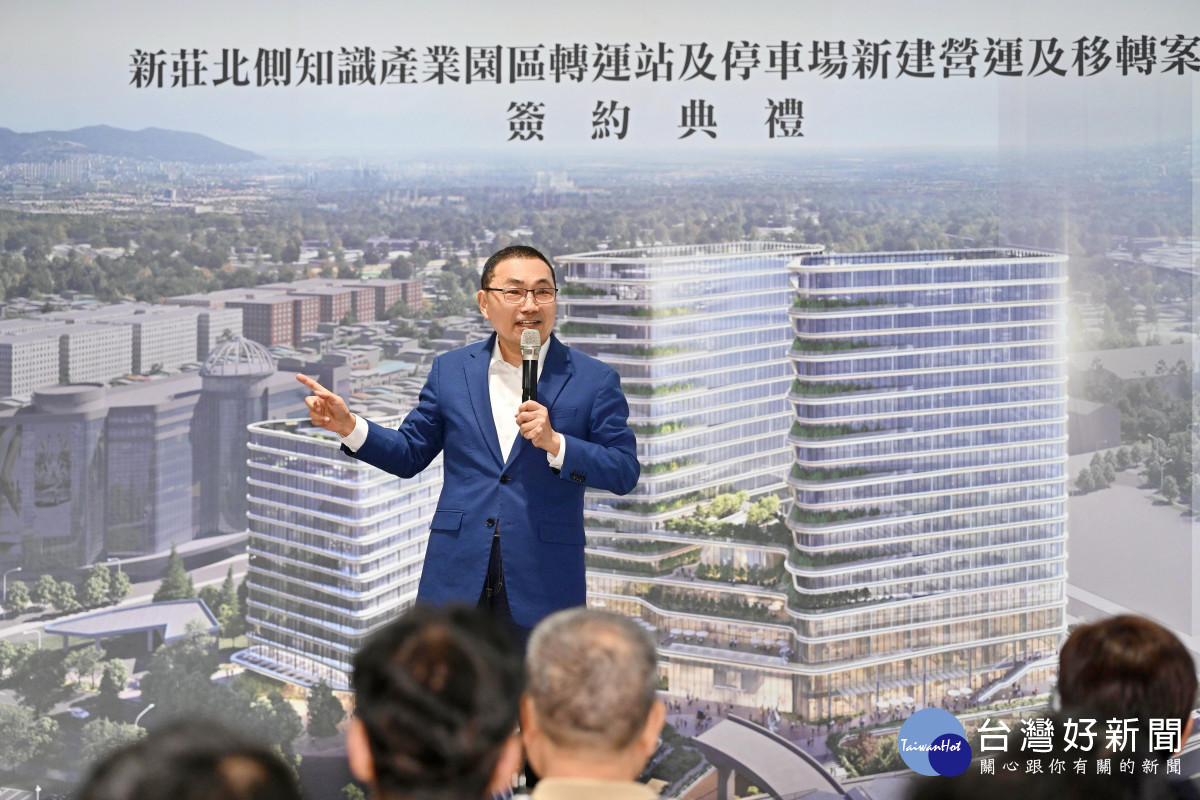 「新莊北側知識產業園區轉運站及停車場新建、營運及移轉BOT案」開發契約;新北市長侯友宜表示,這是新北市又一座BOT複合型轉運站,將引進超過86億元民間投資,預計今年底動工、119年完工啟用,為新北市公共運輸發展再添重要里程碑。