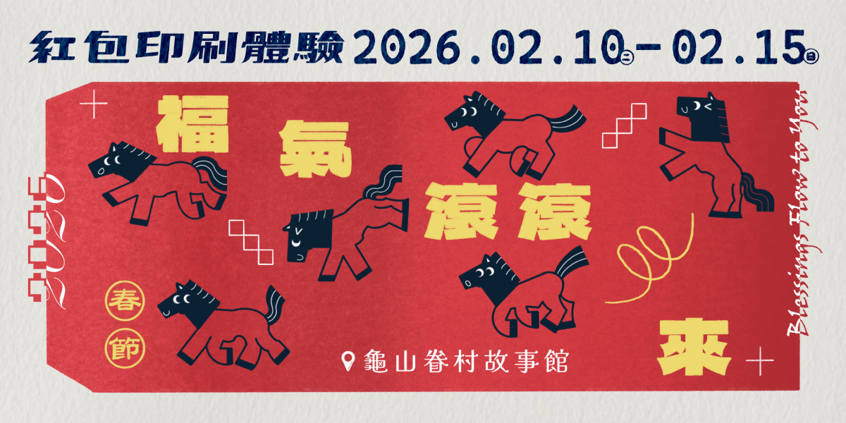 參與方式:追蹤龜山眷村故事館官方臉書或Instagram並按讚春節貼文及填寫訪客意見回饋表,即可兌換一次紅包袋印刷體驗(每則回饋可兌換一份紅包體驗)。龜山眷村故事館期盼在新的一年,藉此蒐集更多來自民眾的祝福與建議,持續作為連結眷村文化與社區情感的重要管道。