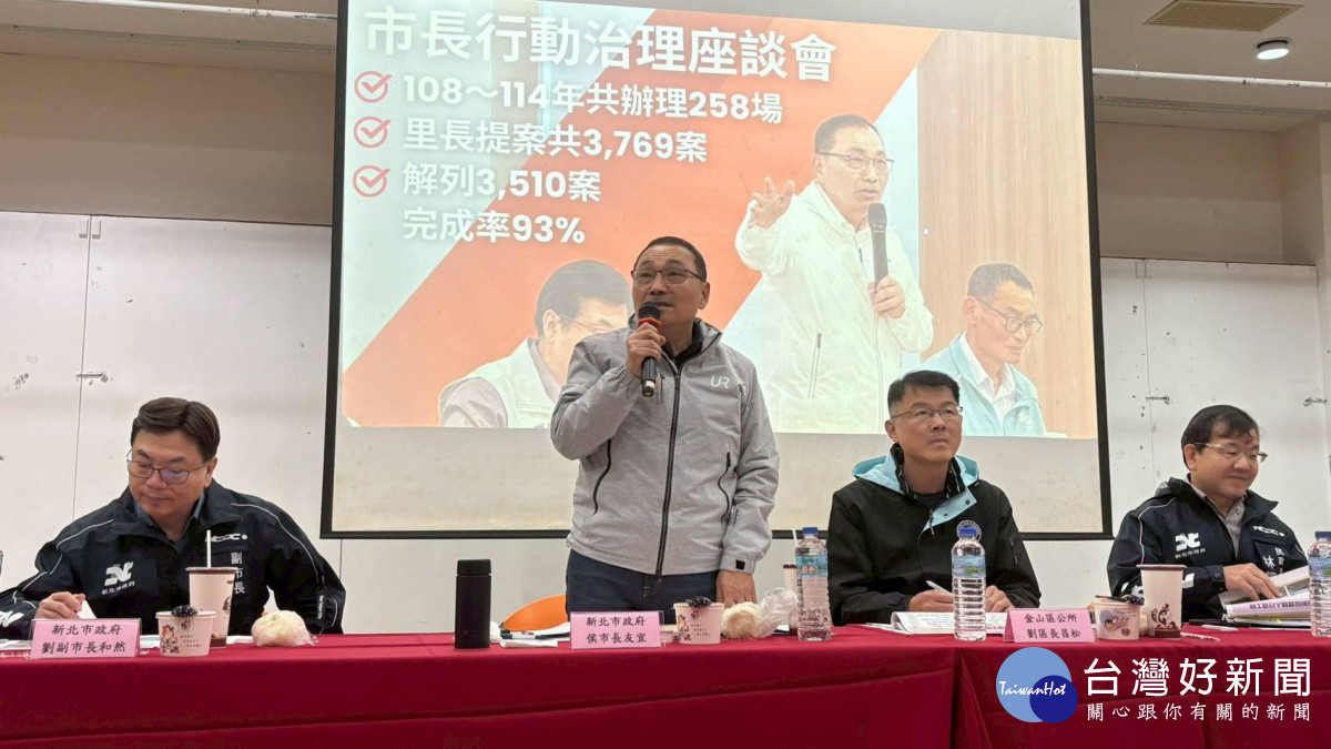 新北市長侯友宜今(27)日率市府團隊前往萬里、金山區,與轄內里長展開行動治理座談會。侯友宜表示,受惠於《財劃法》修法,今年金山區與萬里區預算分別增加約1.4 億元與 1.37 億元,市府將加速推動地方基礎建設,要求公所儘速啟動招標程序,並持續結合萬金石馬拉松、萬金杜鵑花季等品牌活動,強化北海岸觀光競爭力。