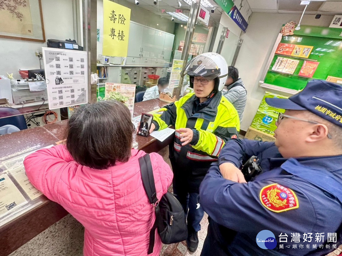 龍潭警分局聖亭派出所巡佐傅錫城、警員劉憬霖及王瑋綸,日前執行巡邏勤務時接獲郵局通報,報稱有民眾欲提領102萬元現金,警方隨即趕赴現場了解情況。邱婦起初向警方表示,提領款項係用於「娶媳婦」,惟當警方進一步詢問迎娶相關細節時,婦人卻支吾其詞、說法反覆,明顯依循詐騙集團常見的「教戰守則」回應,警方遂與郵局櫃員聯手耐心勸說。經警方以實際案例分析說明後,邱婦才吐露實情,坦言日前在網路上加入一個投資群組,對方宣稱「長照機構」為熱門投資標的,標榜可獲取高額報酬。
