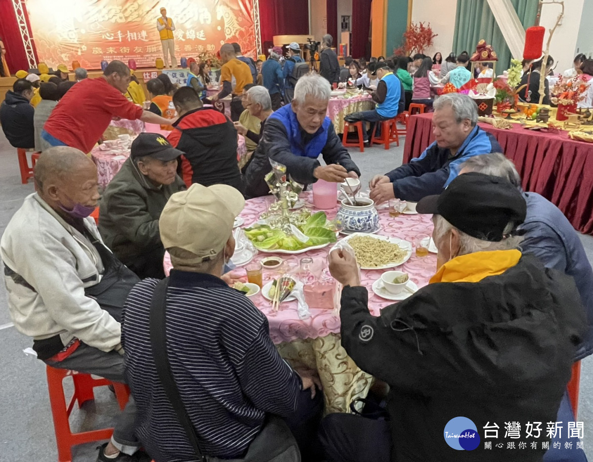 新北市善悅關懷協會今(30)日於新莊區元亨寺台北講堂,舉辦街友圍爐關懷活動,約有150位街友參加,致贈紅包與物資,以及義剪、義診和職涯諮詢、媒合等。新北市社會局長李美珍、副局長吳淑芳和新莊區長朱思戎等到場協助發放紅包與物資,逐一關懷街友。