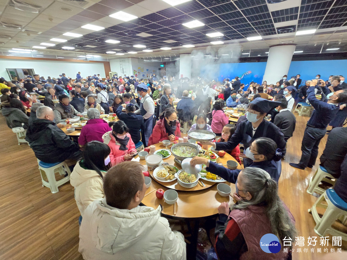 台南慈濟關懷1484戶弱勢家庭及獨老,2月1日上午在台南靜思堂、佳里聯絡處、安平聯絡處、新營共修處同時舉行冬令發放暨圍爐活動,除了領取「福慧紅包」發放年節物資及祝福禮給照顧戶,並安排義診、義剪、各式應景表演及攤位,讓照顧戶提前感受過年氣氛,席開155桌。