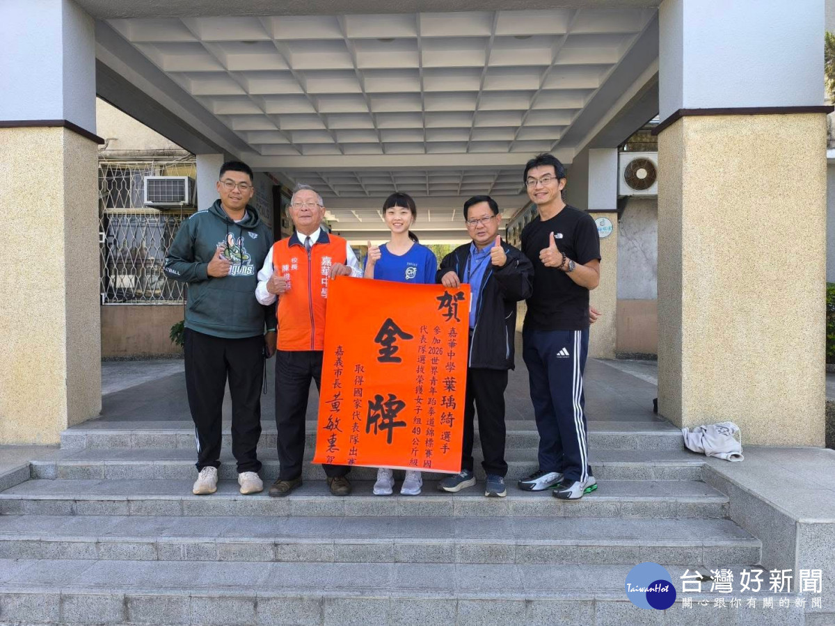 來自嘉義市,現就讀嘉華中學的跆拳道小將葉瑀綺,日前於「2026世界青少年跆拳道選拔錦標賽」中表現亮眼,勇奪女子組49公斤級金牌,成功取得國家代表隊資格,為臺灣、為嘉義市爭光,寫下令人振奮的榮耀時刻。嘉義市政府也於日前到校,送上黃敏惠市長祝賀紅榜,表達鼓勵之意。