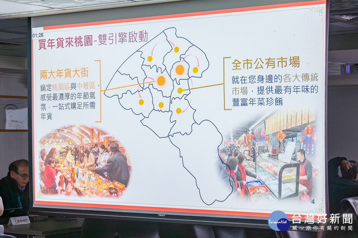 桃園市長張善政4日下午於市政會議中,聽取經發局及觀旅局「迎金馬.遊桃園」專題報告後表示,隨著春節腳步接近,市府整合相關局處資源,規劃年貨大街及多條走春路線,歡迎市民朋友把握假期,攜家帶眷走訪桃園各大景點、採買年貨,親身感受熱鬧歡騰的年節氣氛。