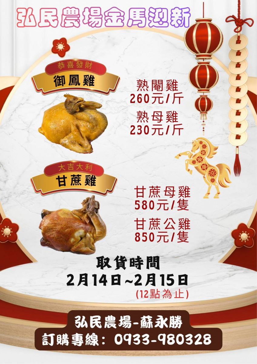 蘇永勝說,新竹市養雞協會的會員都是自產自銷,本身就是大盤商,為了嘉惠鄉親便宜採辦年貨,因此決定在農曆新年前凍漲價格,提供預購、自行取貨(2/14、2/15)的方式,滿足市民過年需求。