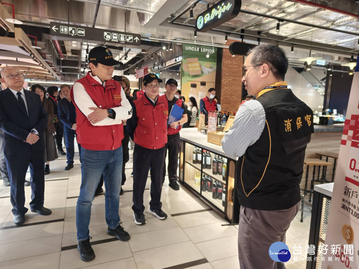 農曆春節將至,新北市轄內各大賣場及商場、市場等公共場所湧入大量人潮,因應業者大量進貨,貨品堆積將導致食品衛生及避難逃生等問題,副市長朱惕之今(6)日率公安小組至裕隆城進行公安、食安,以及電動車充電樁聯合稽查,以維護消費者公共安全、食品安全。