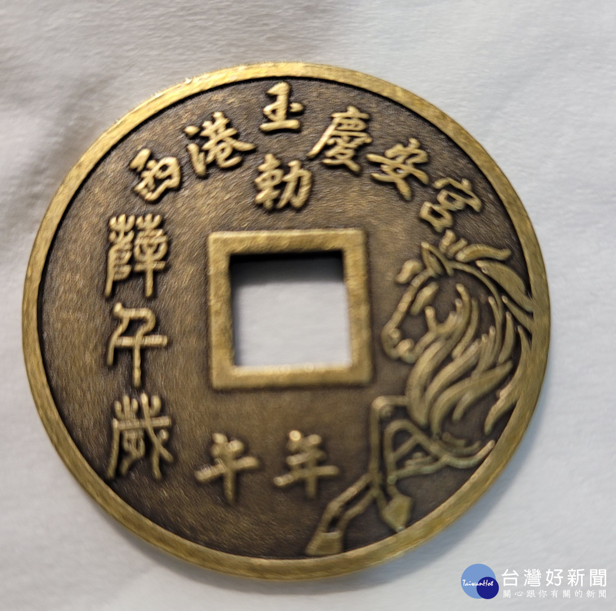 總務組長許語宸說明,歲錢於115年改版,今年馬年歲錢製作11000個,歲錢一面為雙鯉魚,呈現太極圖騰。另一面則有西港玉勒慶安宮、馬年圖像、值年千歲爺名號等,頗具意義。今年將發放7000個歲錢,值年千歲爺為薛千歲。為體恤民眾,黃勝家主委加碼發放發財金7萬6000元,有760個歲錢紅包藏著100元發財金,百元紙鈔都摺成八卦狀,討喜且祈福。