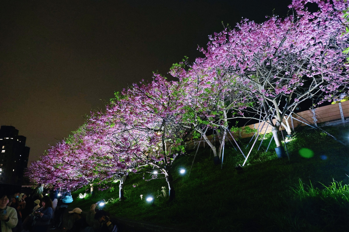 3.串聯新園區: 今年特別串聯新開放的二期公園與創意光影裝置,創造出更具延續性的夜間賞櫻體驗。