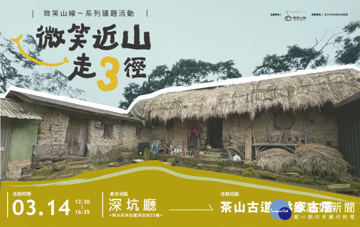 新北市政府觀光旅遊局將於 115 年 3 月 14 日(六)在深坑茶山古道「林家草厝」,舉辦「微笑近山走3徑」山林展演主題活動,結合茶文化與音樂展演及山林健走,邀請民眾走入山林、回望茶路,在自然與人文交織的場域中,體驗放慢步調、沉澱身心的近山生活,並探索深坑四寶之一「茶」之文化。