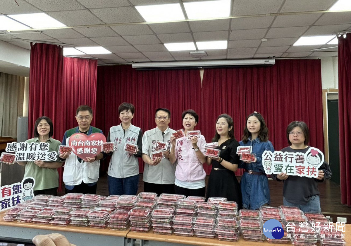 草莓季進入尾聲,春天的甜味也來到台南。立法委員陳亭妃、市議員陳怡珍與陳亭妃服務團隊執行長蔡旺詮攜手民間善心力量,青果西施「顏嘉縈」邀請山甲青果行「桔子潔潔」及滿億行一同捐贈草莓,祝福莘莘學子們莓開眼笑幸福莓滿,25日上午前往南家扶中心捐贈約250盒新鮮草莓,把當季最甜美的滋味送給弱勢家庭。