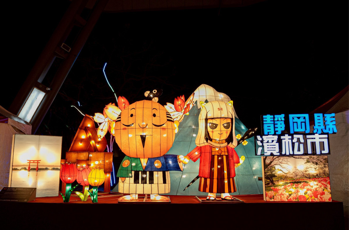 台日合作紀念: 島根縣松江市燈組由日本吟遊詩人團隊與台北市立大學視覺藝術學系學生共同設計,紀念雙方「牡丹交流」20 周年。