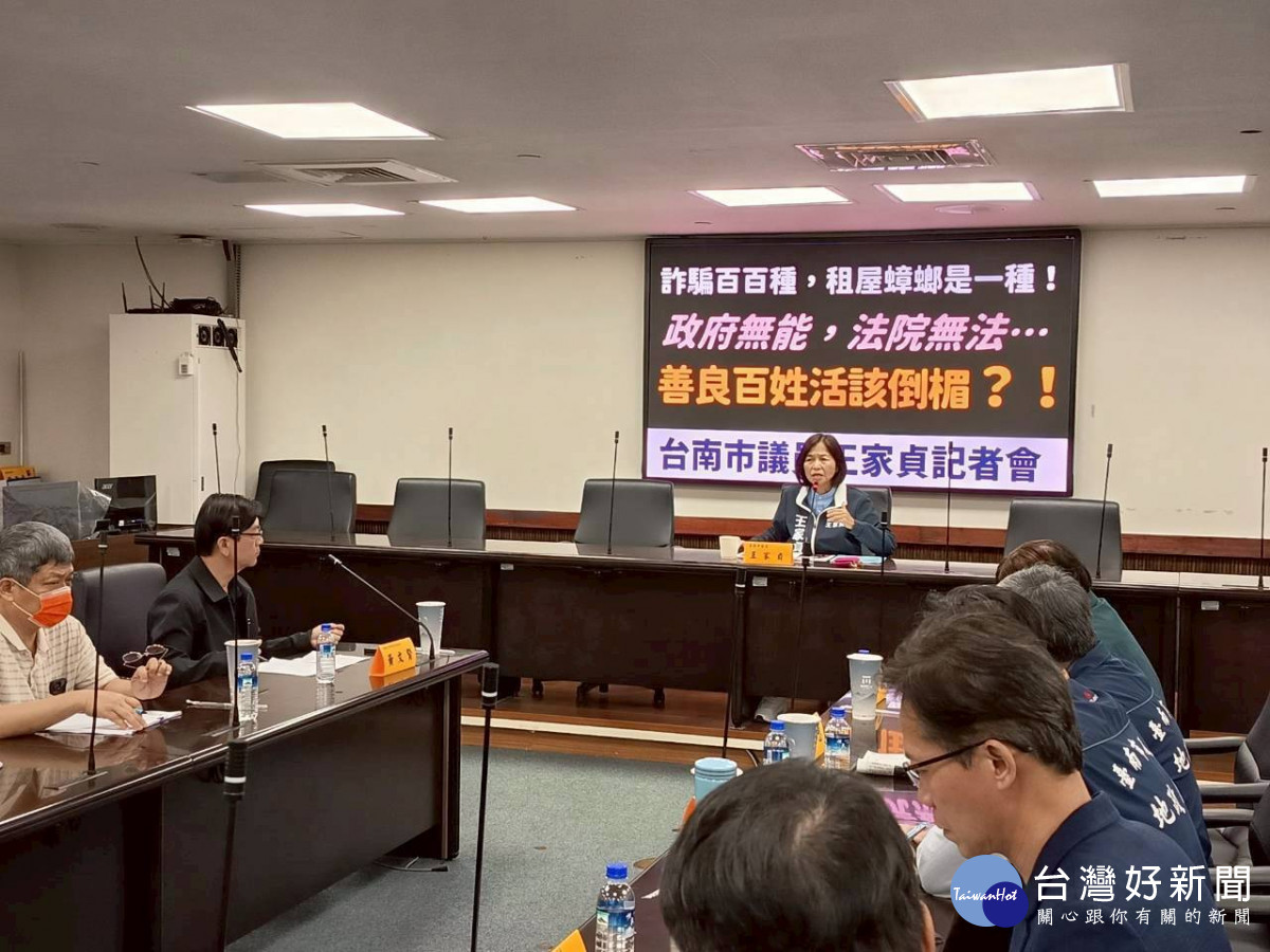 記者會邀集法制處、地政局、一分局偵查隊以及臺糖公司等相關單位,王家貞要求拿出公權力保障民眾租屋不被驚擾以及房子押金合理合法的基本公義。她說,已經不合法了,還敢一屋二租,讓後來租屋者居不安寧,隨時還要擔心租房被莫名侵入。