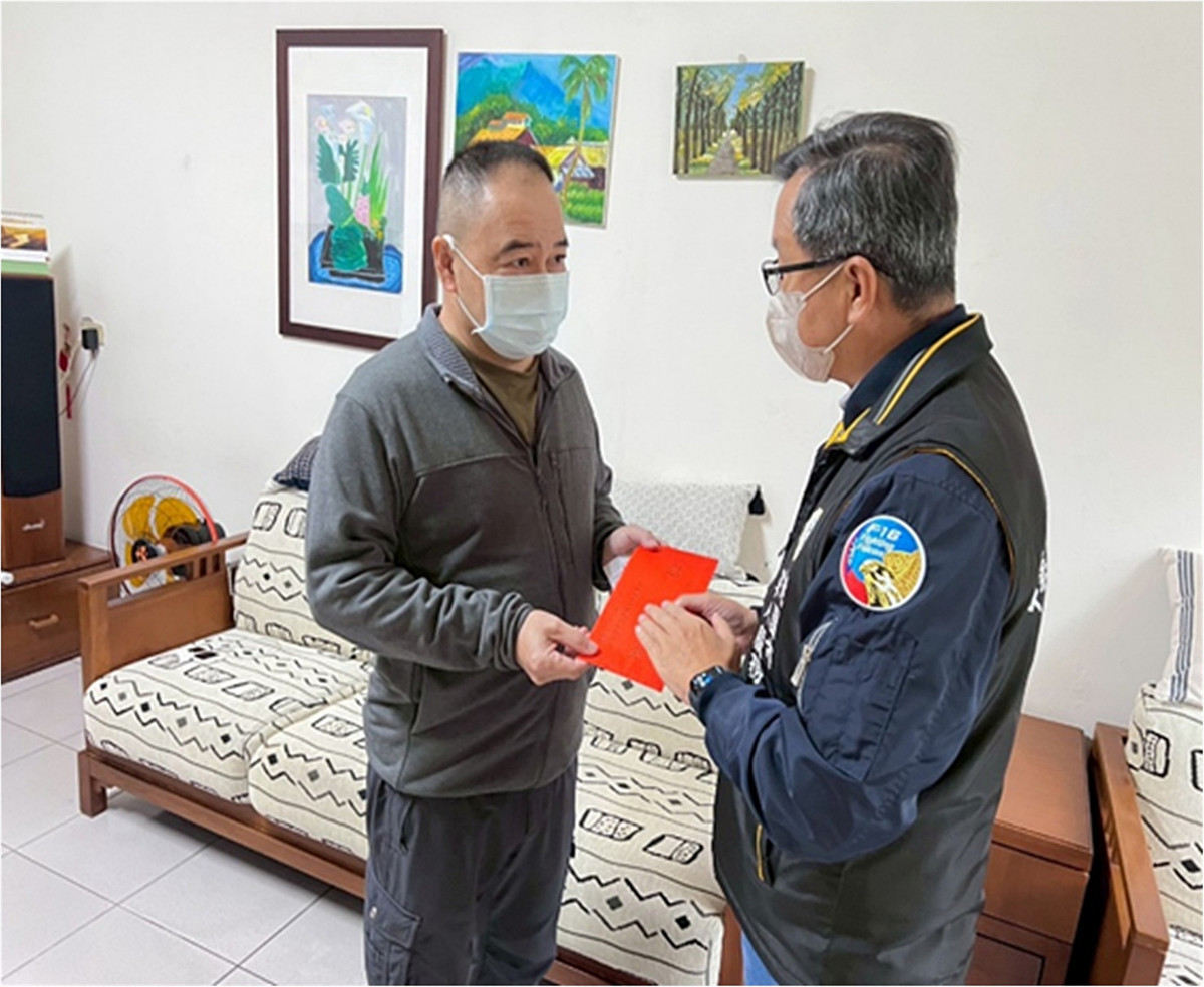 桃園軍人服務站陳中吉站長獲悉後,五日即親自前往慰問並代表謝錦朗董事長致贈慰問金,陳站長探視時,除代表謝董事關心病情及醫治狀況、轉達關懷問候外,也祝福宋士官長早日康復。