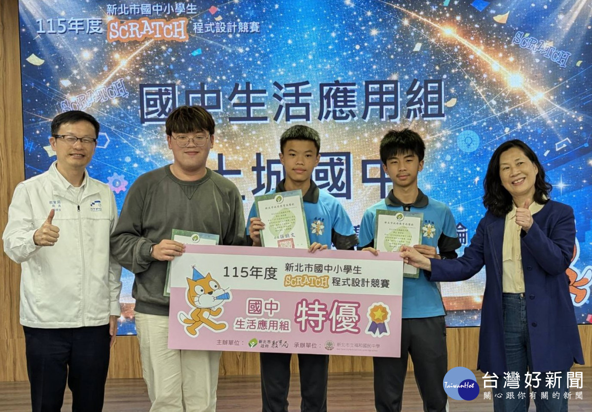教育局強調,Scratch程式設計教育不僅是資訊技能培養,更是培養學生運算思維、問題解決能力與創新素養的重要基礎。新北市持續從課程建構、師資培力到競賽機制,逐步完善數位學習支持體系,並深化與自然科學及藝術等領域的跨域應用,讓程式教育向下扎根。此次8組特優隊伍即將代表新北挑戰全國賽,教育局將持續提供必要支持,期盼孩子在全國舞台上發揮實力,帶著創意與行動力,再為新北爭光。