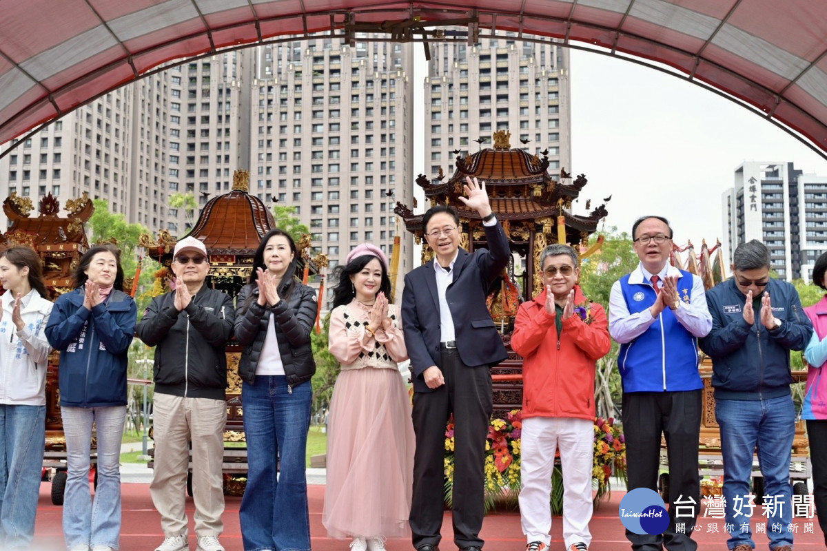 神轎隊伍抵達桃園藝文中心時,桃園市長張善政偕夫人、文化局長邱正生等貴賓蒞臨會場參與活動。張善政市長表示,桃園大廟景福宮長年推動宗教與民俗文化活動,開漳聖王文化季不僅凝聚地方信仰力量,也展現桃園傳統文化的活力與特色,市府將持續支持地方宗教文化的保存與發展。