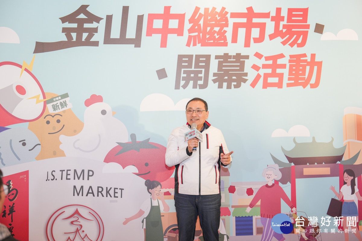 金山中繼市場今(8)日舉行開幕典禮,市長侯友宜出席致詞時表示,感謝金山市場自治會、全體攤商,以及地方立委、議員與各界的協力支持,讓市場蛻變為明亮、整潔、舒適的全新空間;同時也向陪伴地方多年的金山舊市場致上敬意,為其功成身退畫下圓滿句點。