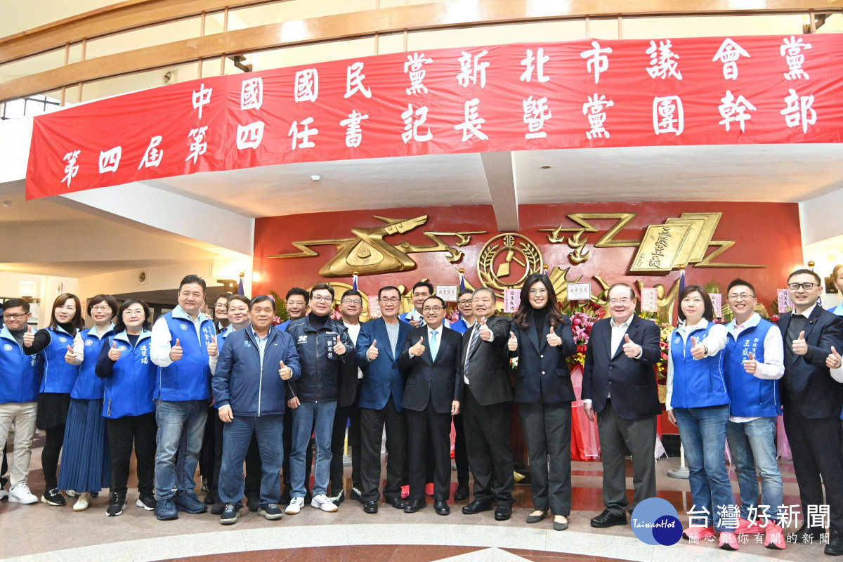 新北市議會國民黨團今(9)日舉行黨團幹部交接儀式,新任黨團書記長陳儀君、副書記長林國春、楊春妹、洪佳君、財務長陳家琪,另成立黨團政策智庫,由新北市議員黃心華擔任智庫總召。國民黨主席鄭麗文、副主席兼秘書長李乾龍、侯友宜市長、李四川副市長等親自出席加油打氣!