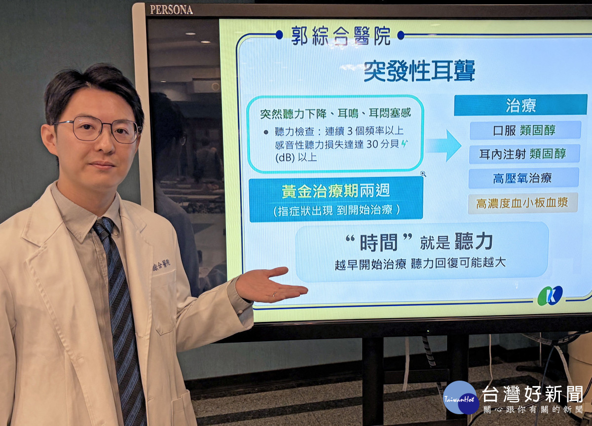 郭醫師呼籲,若發現突然聽力下降、耳鳴或耳悶塞感,務必把握2週內的黃金期及時就醫並盡早開始治療。多爭取一點時間,就多一分找回聲音的機會。