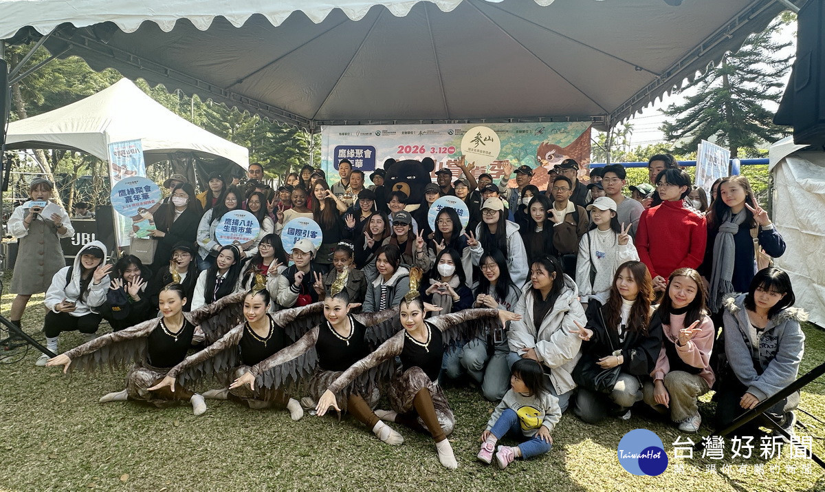南投市八卦山上賞鷹活動即將進入盛況,交通部觀光署參山國家風景區管理處與南投市公所14日上午特別於赤腳精靈舉行2026鷹緣聚會嘉年華活動,20年來清明前後灰面鵟鷹北返遷徏壯觀場面,一直吸引許多遊客、學校及追鷹族來捕捉鷹群盤旋天際的畫面,今年更特別有80名在臺外籍學生,在參山風管處安排下參訪八卦山認識生態保育環境。