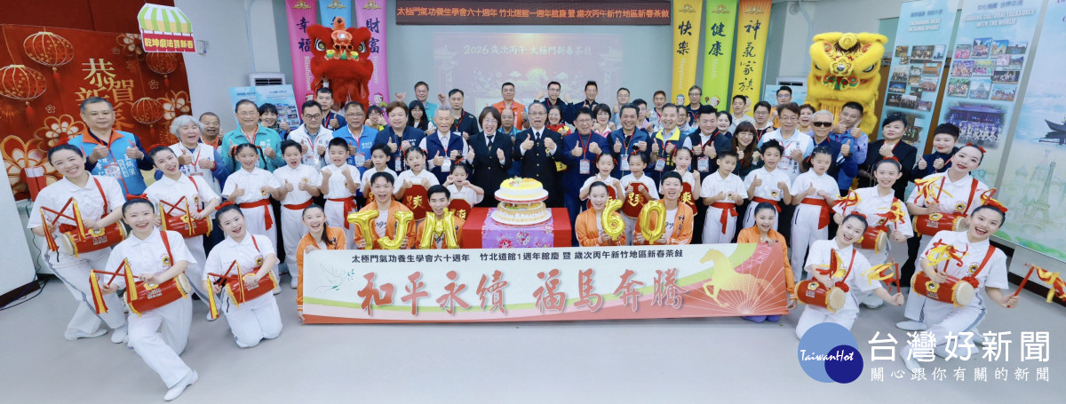 太極門氣功養生學會15日舉辦竹北道館一週年館慶暨新竹地區新春茶敍活動,以「和平永續 福馬奔騰」為主題,迎接太極門氣功養生學會60週年,並為新的一年開創新局。各界好友齊聚一堂,納福祈願,為新的一年注入希望與祝福。立委林思銘、鄭正鈐等民意代表近60位一起共襄盛舉,為世人祈福。
