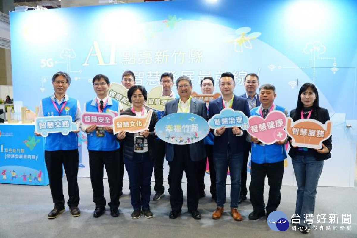 新竹縣展區展現八年數位治理成果,今年以「科技首都 幸福竹縣:AI領航,永續家園」為主題參展,除了智慧交通外,展區更延伸至「產業、教育、安全、環保」等多元領域,完整呈現楊文科縣長與團隊的八年數位治理精華。