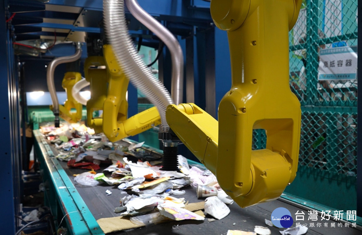 環保局說明,該基地全廠導入創新分選科技,結合自動輸送系統與AI智慧辨識設備,可精準辨識多達17類資收物,相較於傳統人力分選,整體處理效率提升5倍,資源再利用率亦提高13%。此外,建築物採綠建築設計,整合屋頂太陽能、薄層綠化、雨水回收及自然採光通風,預計每年可減少約273噸碳排放。基地內特別規劃參觀廊道與環境教育課程,截至目前已吸引20個國家、超過4,000人次參訪,成為新北向國際輸出環境治理經驗的重要據點。