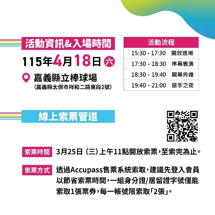 地點:嘉義縣立棒球場(嘉義縣太保市祥和二路東段 2 號)