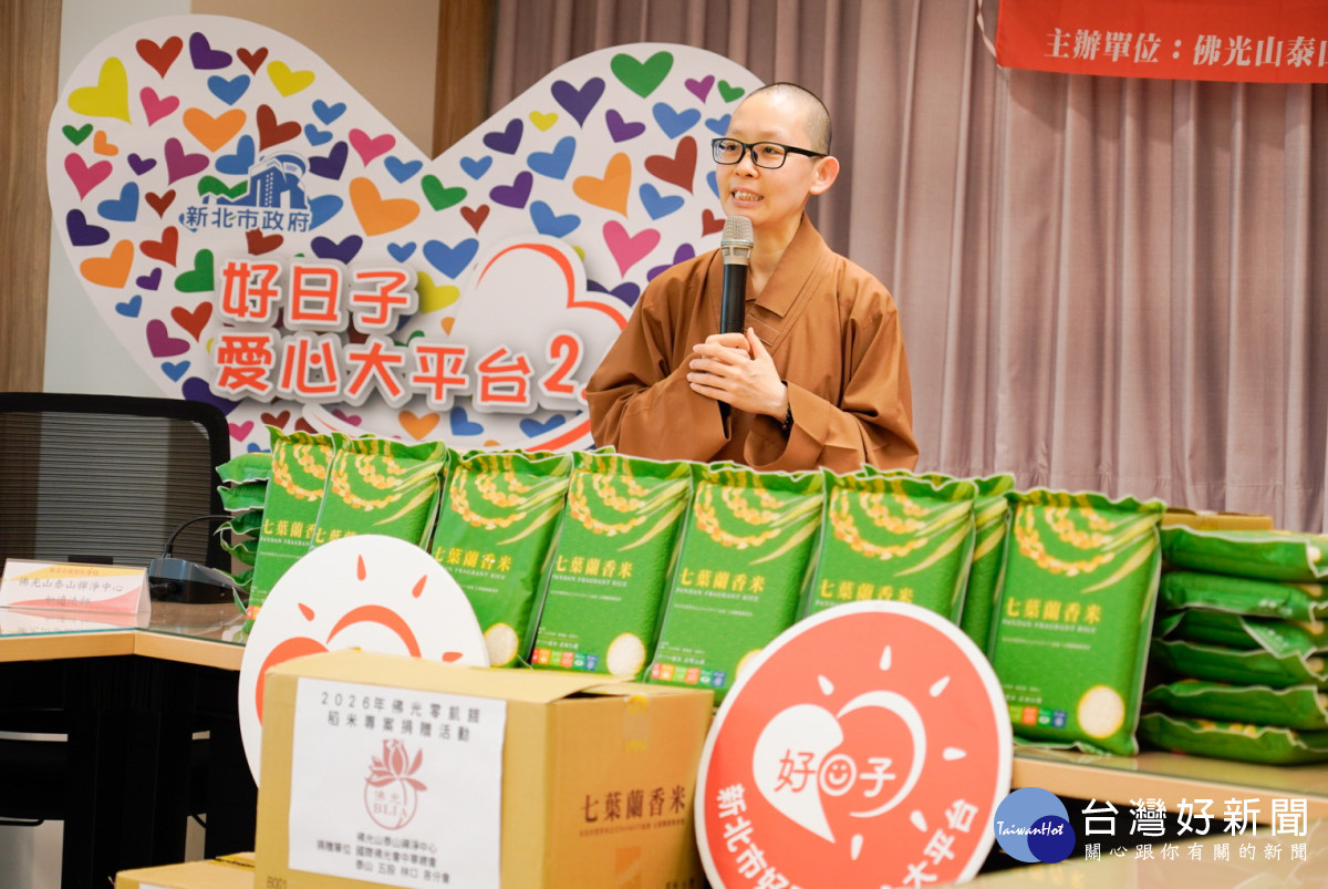 佛光山泰山禪淨中心如遠法師表示,佛光山秉持開山祖師星雲大師「人間佛教」精神,廣結大眾善緣,關懷社會、利益眾生,捐贈白米,一方面護持農民,另方面幫助需要的家庭,希望這份善念,能帶給社會溫暖。